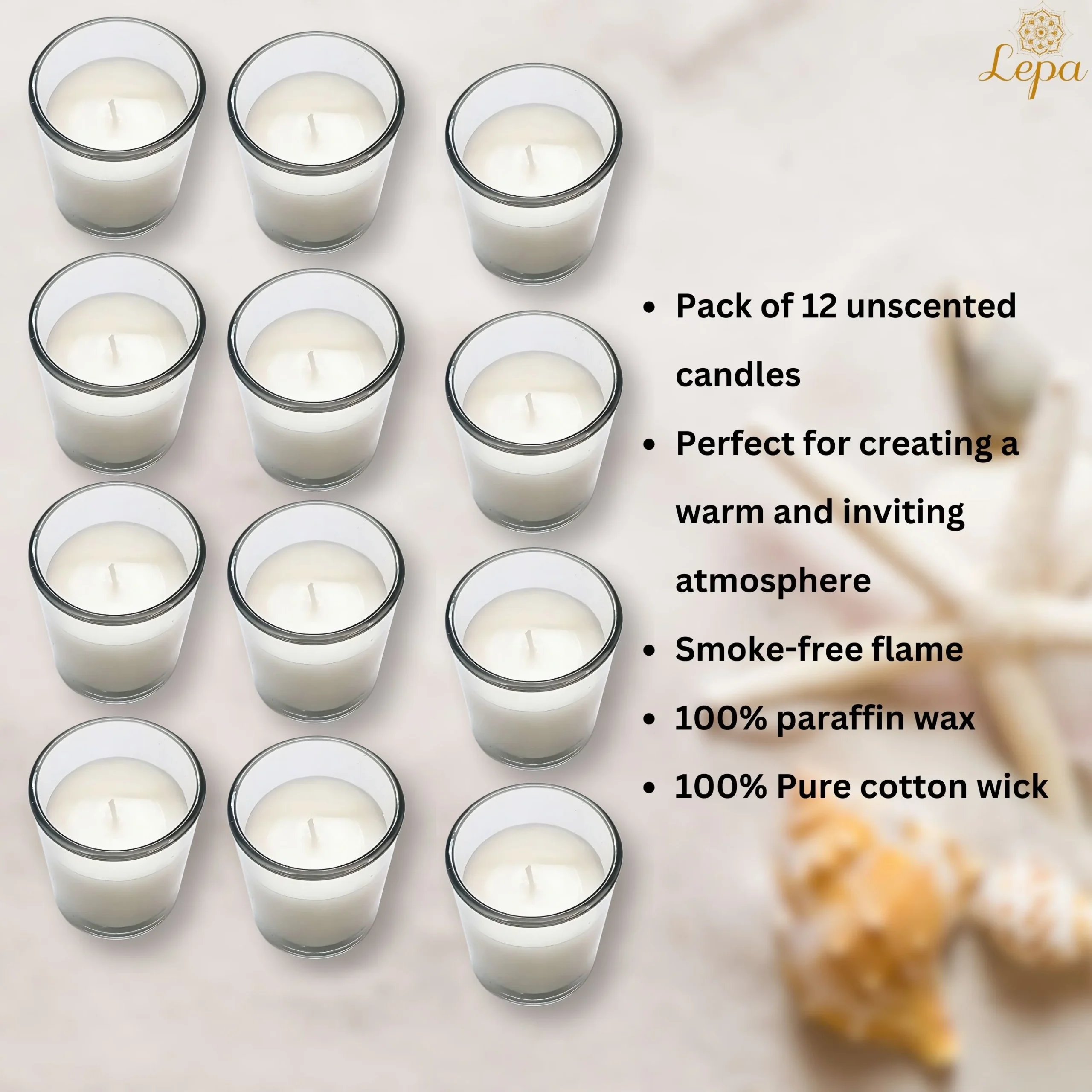 Home Unscented Candles 45 ml Unscented Paraffin Wax Glass Candles – 12-Piece Gift Set