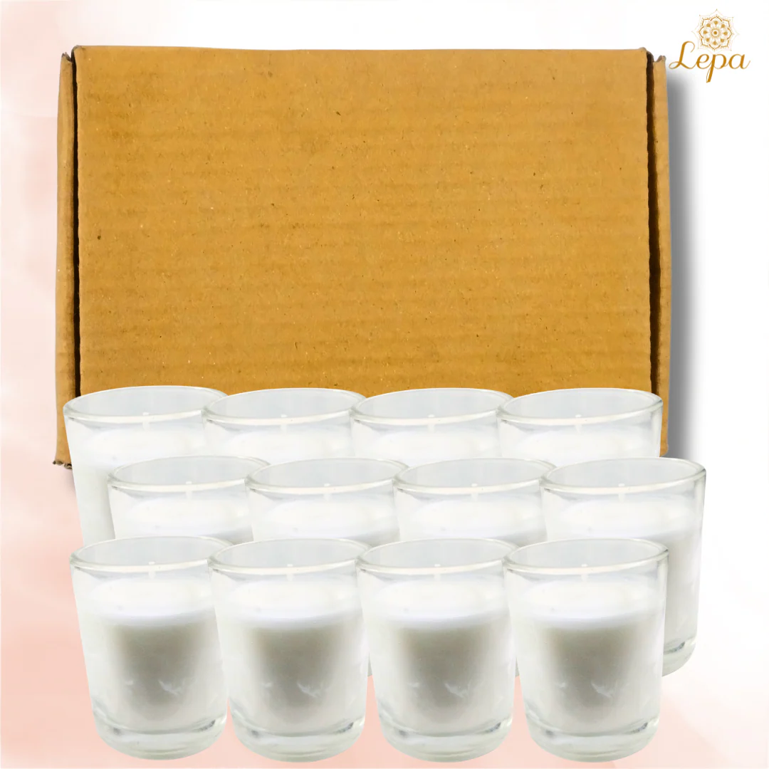 45 ml Unscented Paraffin Wax Glass Candles – 12-Piece Gift Set