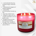 • Ingredients: Natural Soy Wax, Garden Rose Essential Oil, Lead-Free Cotton Wick.