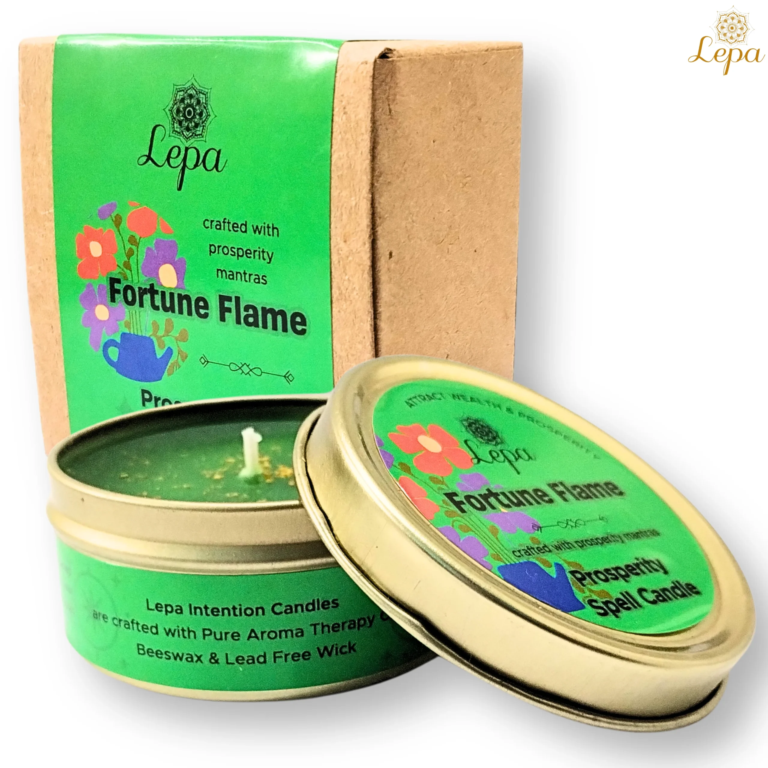 • Elegant Design: Encased in a Tin jar, the Lepa Fortune Flame Prosperity Spell  Candle adds a touch of elegance to any décor. It also makes an ideal gift for birthdays, anniversaries, or any special occasion.
