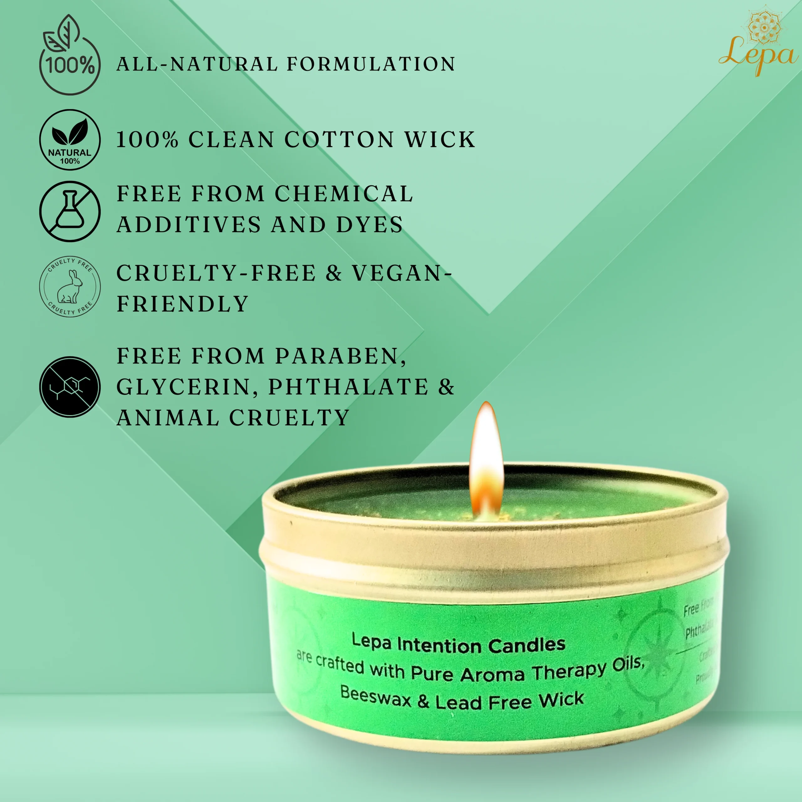 • Lepa Intention Candles: Crafted with Pure Aroma Therapy Oils, Beeswax & Lead Free Wick.